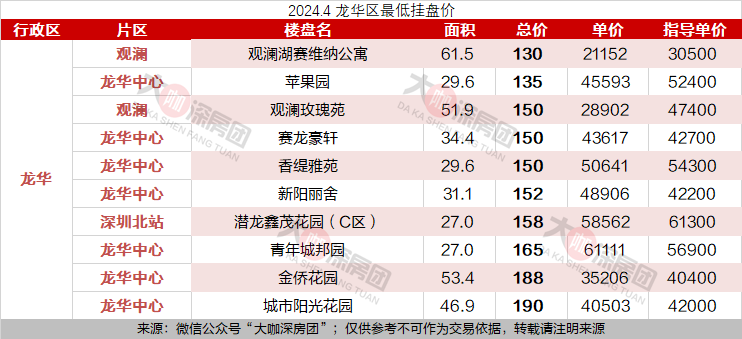 龙华区的底价盘主要在龙华中心片区,此外观澜和深圳北站也有部分挂盘。
