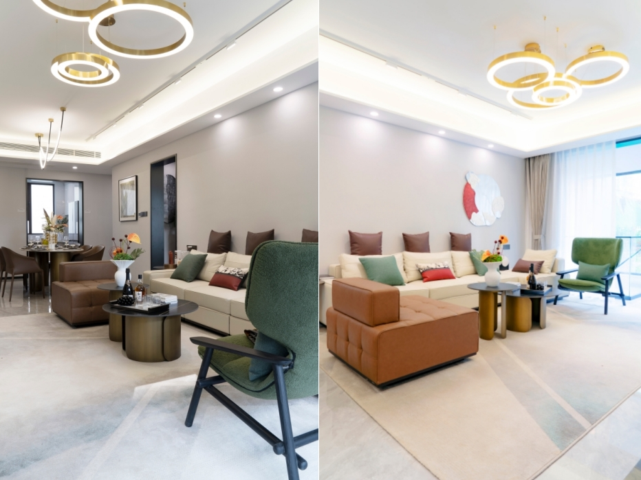 建面约123-141㎡现房洋房,看得见的实景空间,三/四开间朝南,室内的朗阔触感扑面而来,生活格局轩朗。客厅、餐厅、阳台一体,将传统“客厅”升级为“聚厅”,形成多元场景一体功能区,连接家庭情感;从功能性、尺度感、舒适度等多维度升级,以有度的空间衡量改善的尺度,迭新高阶空间,赋予家庭成员每一平舒适的体感。