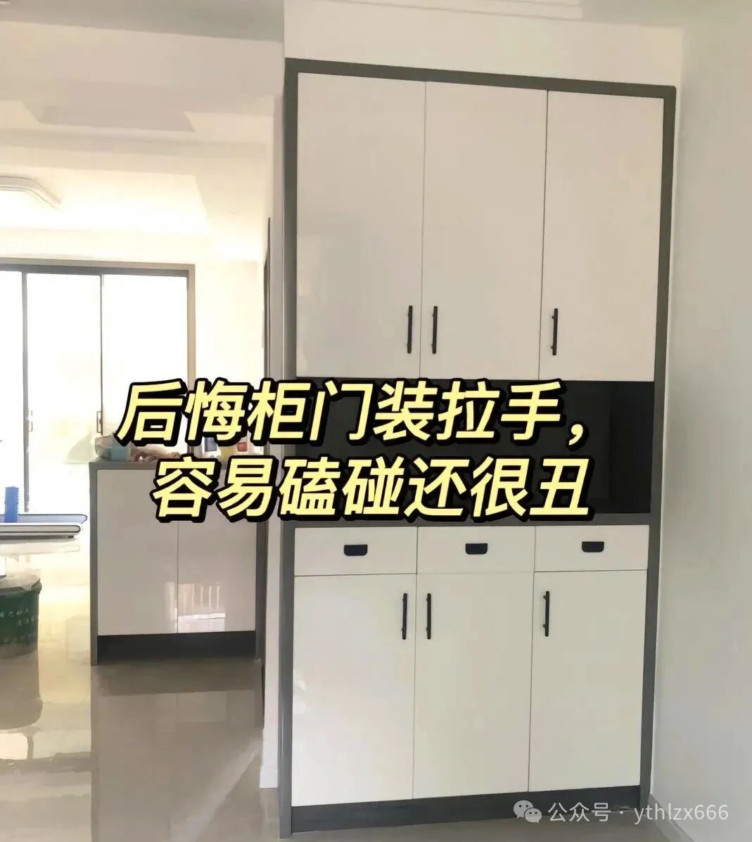 柜门装上了拉手,虽然看起来更美观了,但却非常容易磕碰。尤其是家里有小孩的家庭,更要注意这一点。所以,在选择柜门拉手时,我们既要考虑美观性,也要考虑实用性。