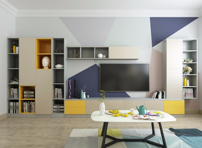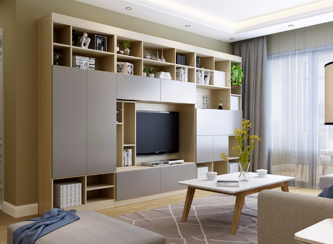 小户型轻奢风装修,一整面墙电视柜设计,好看又实用