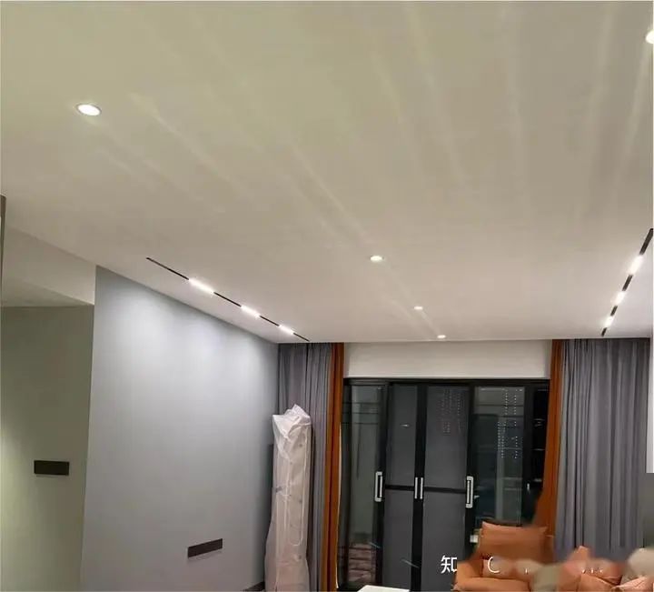 亮光瓷砖会将灯光反射至天花板,导致视觉上的不适。因此,无主灯设计宜选择折射光线柔和的柔光砖。