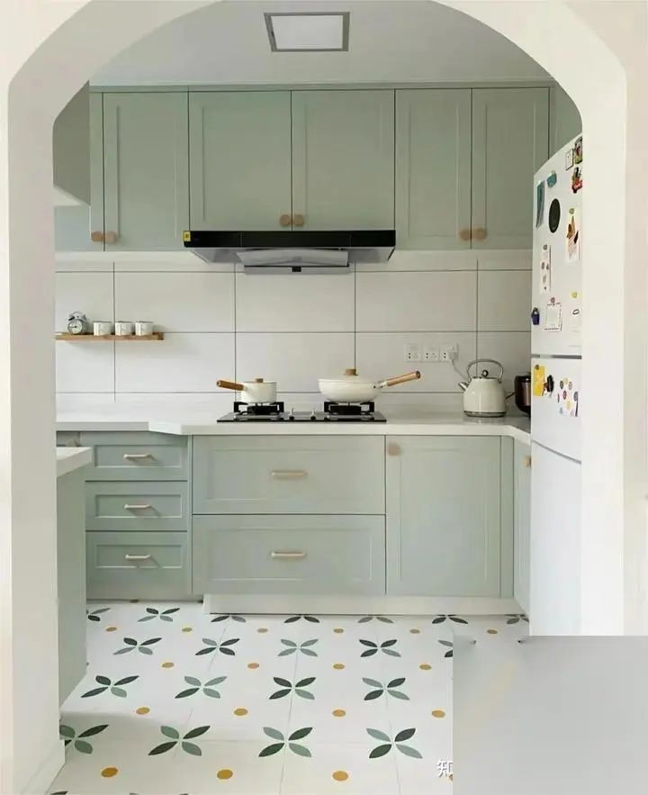 比如厨房墙面的鱼肚白瓷砖,版面丰富的版本会显得典雅豪华,而版面单一则可能显得平庸。