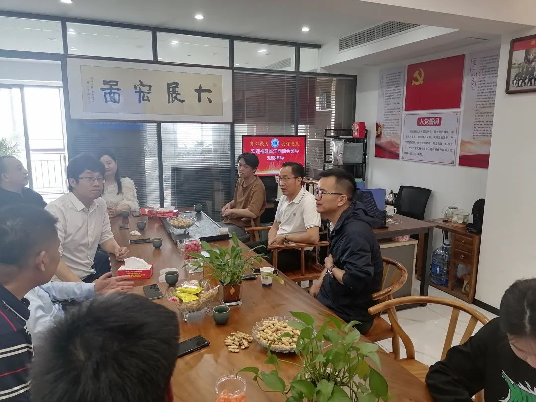 4月24日,省江西商会轮值会长凌炎峰、蔡恒庆、陈冬发一行到我会走访交流。徐红雨会长等领导陪同交流。