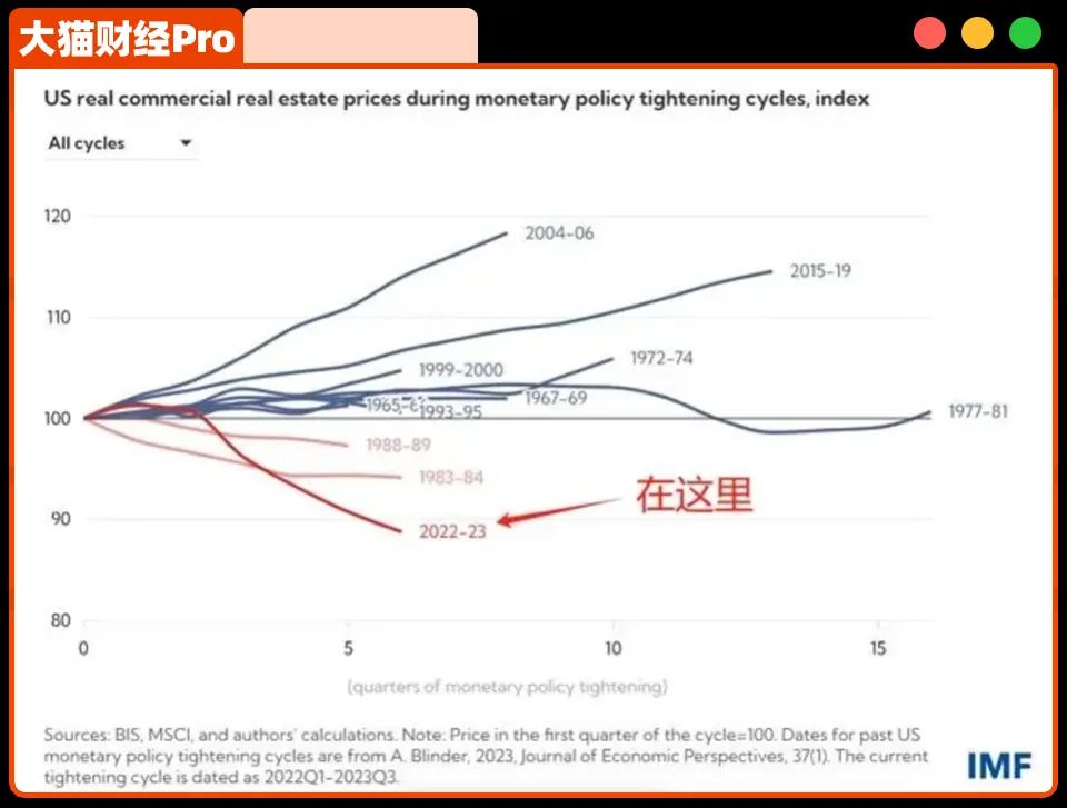美国商业地产的贷款期限一般低于10年,每年有1万多亿到期,去年,很多房主其实就撑不住了,然后跟银行一商量,有5400多亿美元的贷款选择了展期,大家都在赌什么呢?就是赌今年降息。
