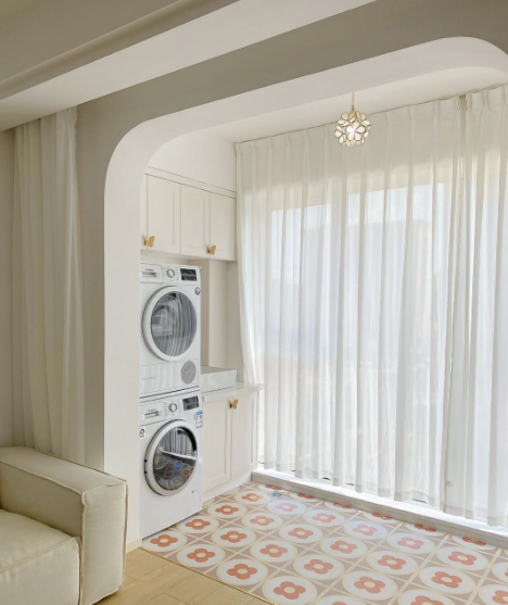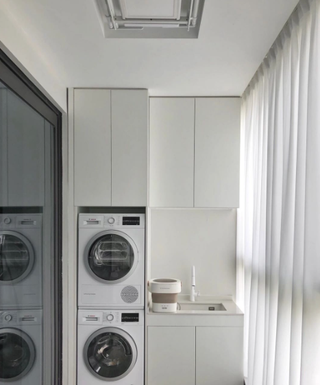 阳台一般需要预留 4 个左右的插座,以满足洗衣机、烘干机、晾衣架等设备的用电需求。插座位置在装饰之前就需要设计好,否则后期再进行整改是非常麻烦的。