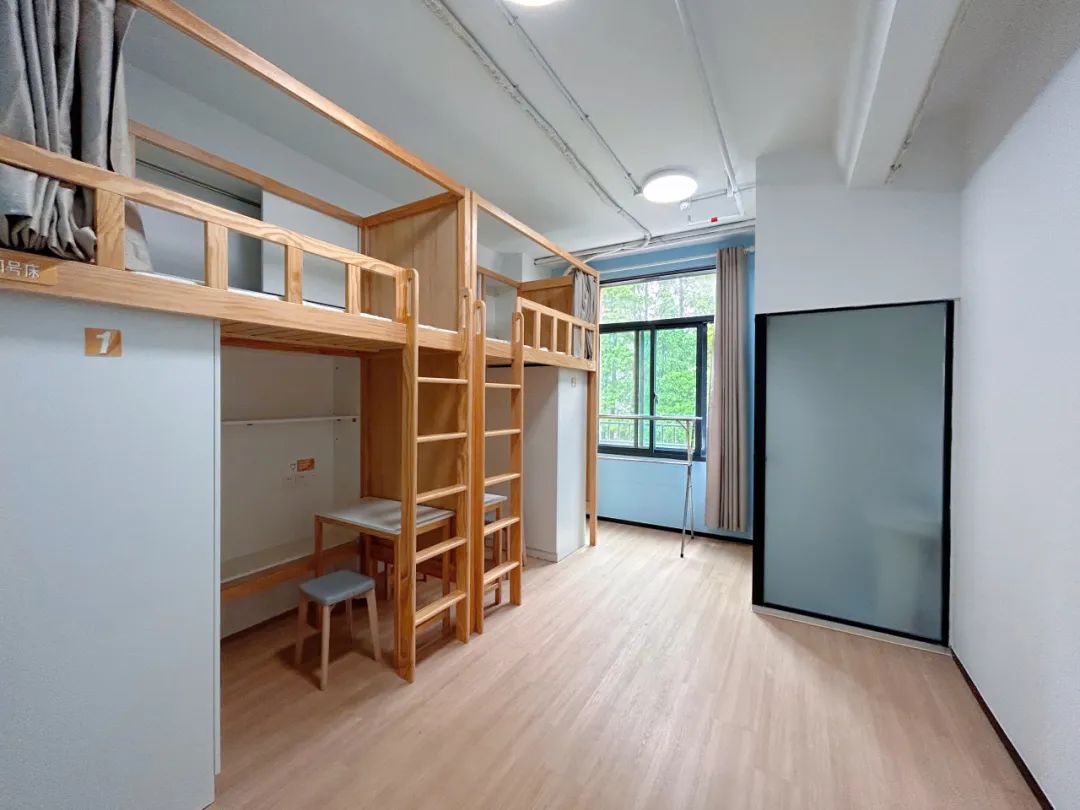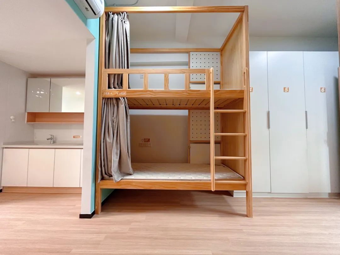 房间内配置实木床及床垫、衣橱、晾衣架、空调、双位洗漱台、干湿分离的淋浴卫生间、挂壁式新风系统让室内的空气更新鲜,居住的更舒心。