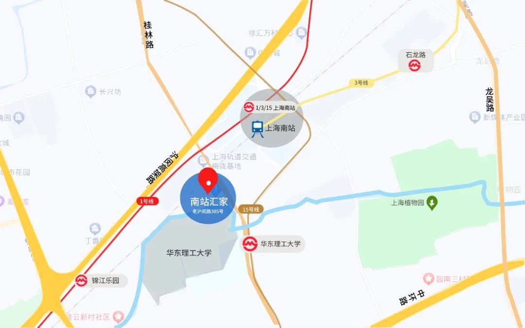 南站汇家项目毗邻地铁15号线华东理工大学站、临近1号、3号线上海南站,附近公交有111路、156路及157路等9条公交线路,步行约5分钟,交通便利。