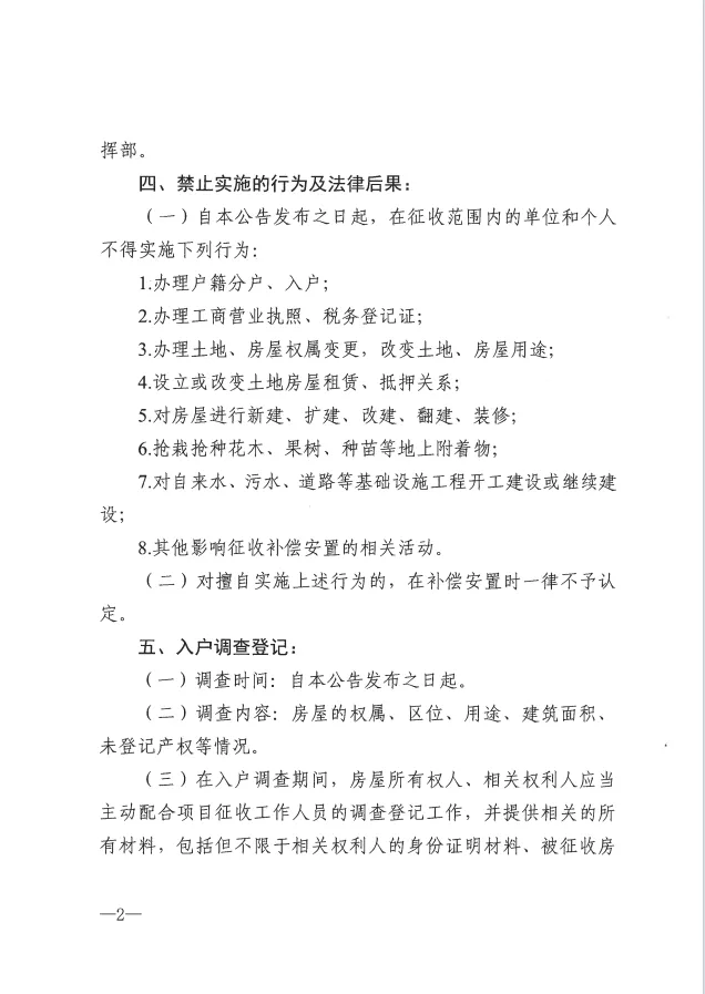 (一)自本公告发布之日起,在征收范围内的单位和个人不得实施下列行为: