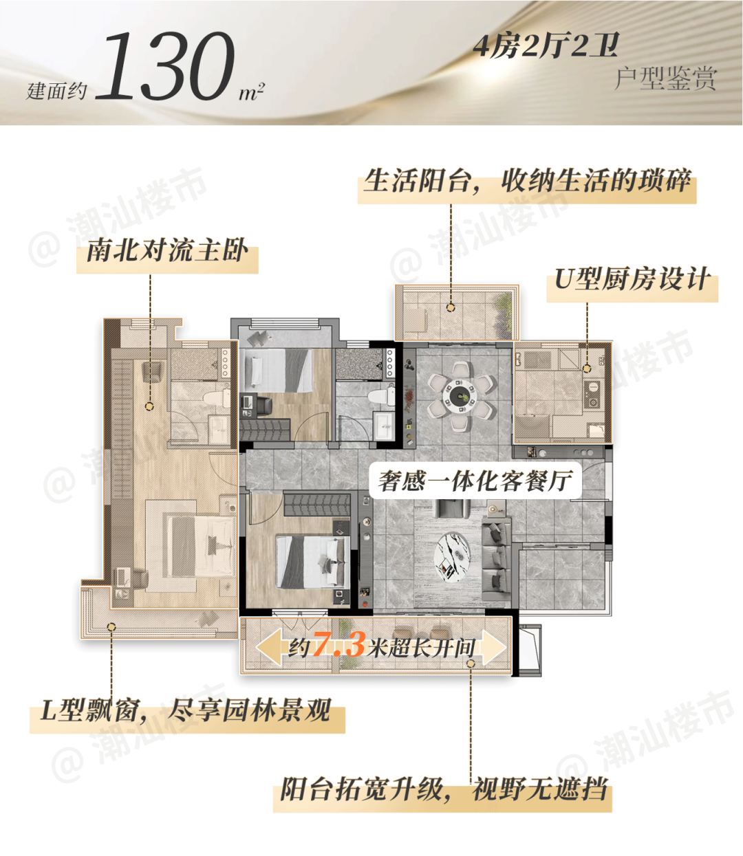 当然,在产品竞争力上,保利天汇花园也给出了极大的诚意。房姐获悉,目前在售建面约99-130㎡三四房,在一期高品质的基础上,来了一次全面的升级。首先是户型升级,两个重点:景观阳台PLUS,L型观景飘窗。如建面约130㎡户型,阳台拓宽至约7.3米,横跨客厅和次卧,形成媲美大平层的阔绰生活体验。阳台门一推开,就是巨幕阳光,还可放架跑步机,一边看着园景,一边运动,舒展身心。