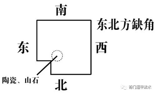 东北为艮宫,代表家中少男,在风水上称为子孙山,代表家中人丁旺盛,如果此处缺角会对家中少男和男丁健康学业不利;并在丑寅卯年流年落空,注意脾胃消化系统的疾病发生。