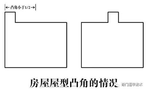 凸角是指原本方正的房屋多处了一个小角,而这个多出的小角的大小小于该角所在墙边长度的1/2。具体来说,屋型就像"凸"字型一样在方正的屋型上多出一块区域。