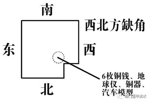 化解方法:在西北方摆放6枚铜钱、地球仪、铜器、汽车模型