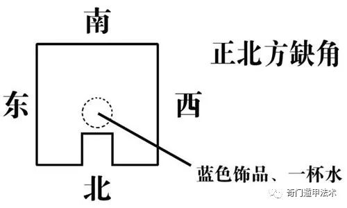 正北为坎宫,代表中男,在风水上称为财山有为靠山;如果此处缺角会对家中中男健康学业不利;并在亥子丑年落空,并注意肾脏方面的疾病发生。