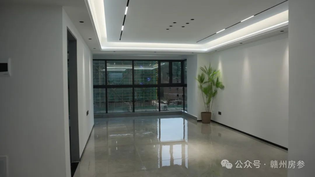 ▲ 赣州金鹏澜瑾园全屋硬装交付样板房实拍图,客厅吊顶和灯具都有安装好