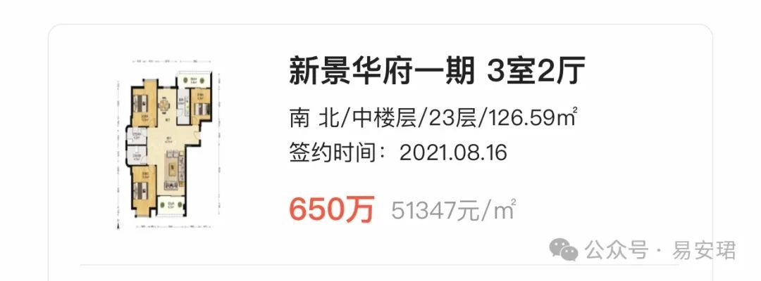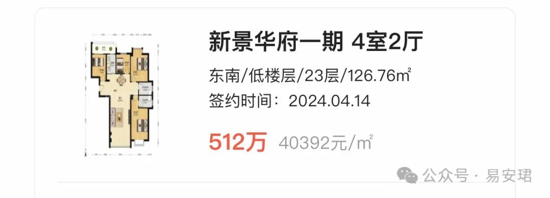 1、湖里金尚板块——新景华府一期,126.76平4房,成交单价40392元/平,成交总价512万;20201年相似户型成交单价51347元/平,成交总价650万;3年时间总价调整了138万。