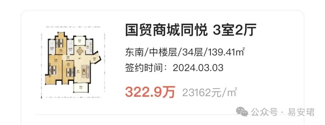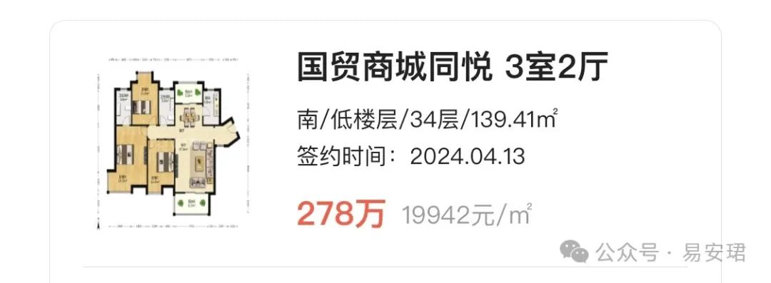 13、集美嘉庚体育馆附近——国贸商城同悦,139.41平3房,成交单价19942元/平,成交总价278万;上个月同户型成交单价23162元/平,成交总价322.9万;只隔1个月,总价调整了44.9万。
