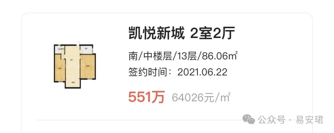 8、湖里枋湖片区——凯悦新城,96.2平2房,成交单价45360元/平,成交总价391万;2021年同户型成交单价64026元/平,成交总价551万;3年时间,总价调整了160万左右。