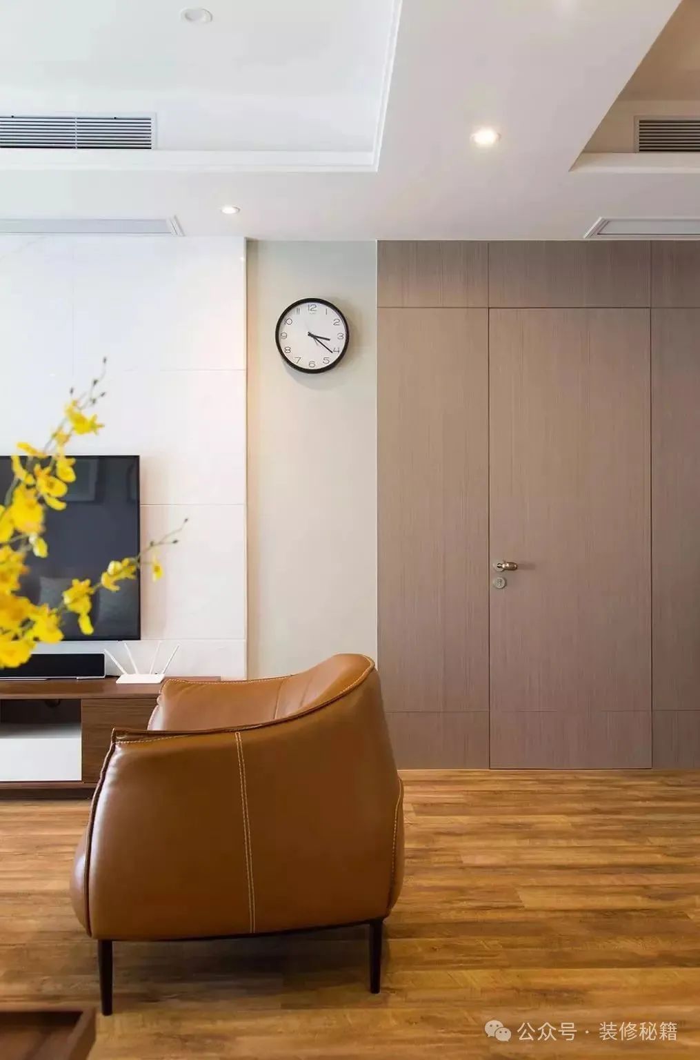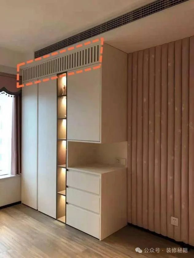 许多家庭会在客厅装设柜式空调,那怎样让机柜成为室内和谐的一部分呢?这时,可为空调打造一个壁龛,随后在外面装设百叶窗,使用空调时打开百叶窗,无需空调时将百叶窗合上,如此,空调便能完全融入客厅这个整体。