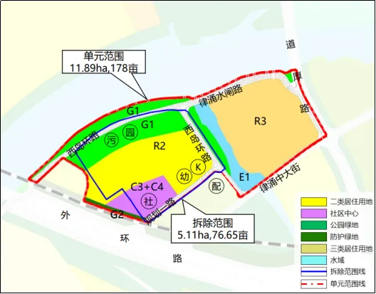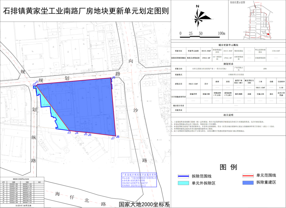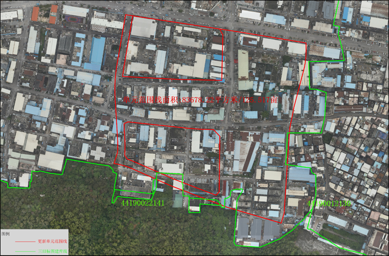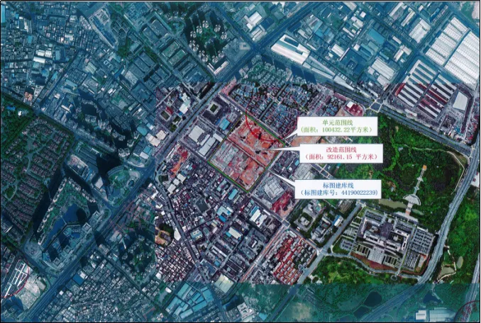 该更新单元位于东至小河路、南至西部干道、西至永达彩印有限公司、北至东莞新光电线有限公司,用地面积为47046.4㎡。