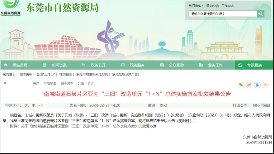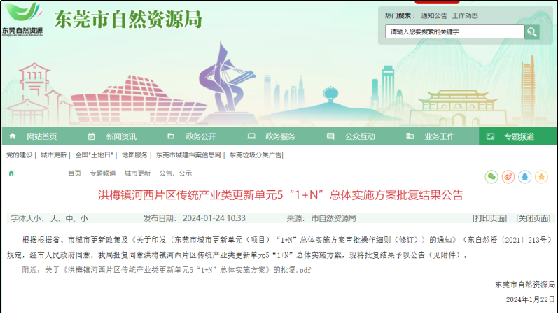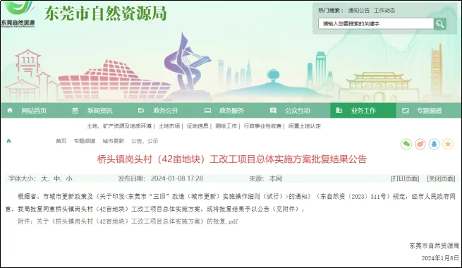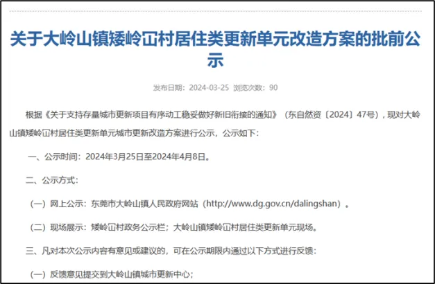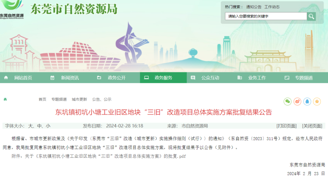 改更新单元位于东城南片区立新社区,东至莞长路、南至旗同大街、西至纵二路、北至光大路,用地面积为228000㎡,这次以单一主体挂牌招商方式进行改造。