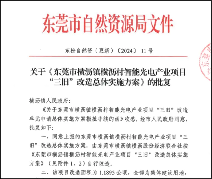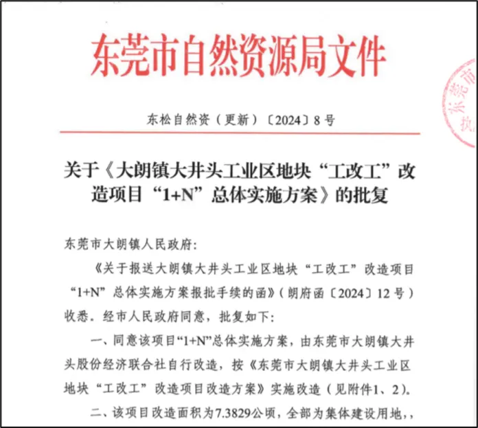 该更新单元位于大朗镇求富路社区,用地面积为16449.4㎡,更新方向为一类工业用地,由东莞市大朗镇求富路股份经济联合社采取村集体自行改造方式进行改造。