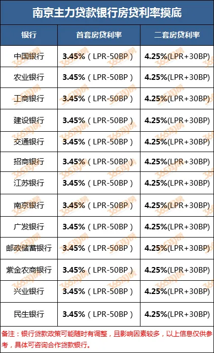 从摸底情况来看,南京各大银行首套房贷利率执行LPR-50基点,即为3.45%;二套房贷利率执行LPR+30基点,即为4.25%。