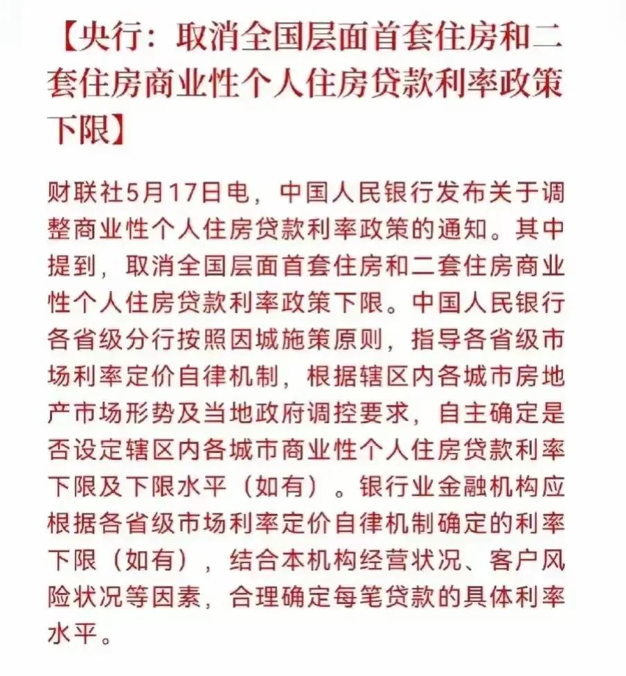 两部委表示,取消全国层面首套住房和二套住房商业性个人住房贷款利率政策下限。