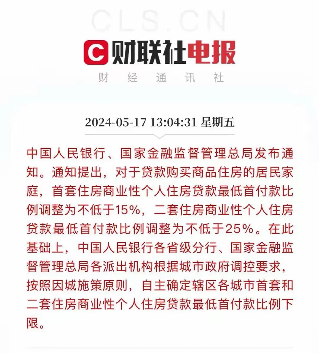 刚刚央行和金融监管总局发布通知,调整商贷最低首付比例,首套房商贷最低首付比例下调为不低于15%,这也创下了有史以来首付比例最低记录!二套房首付比例最低为25%。