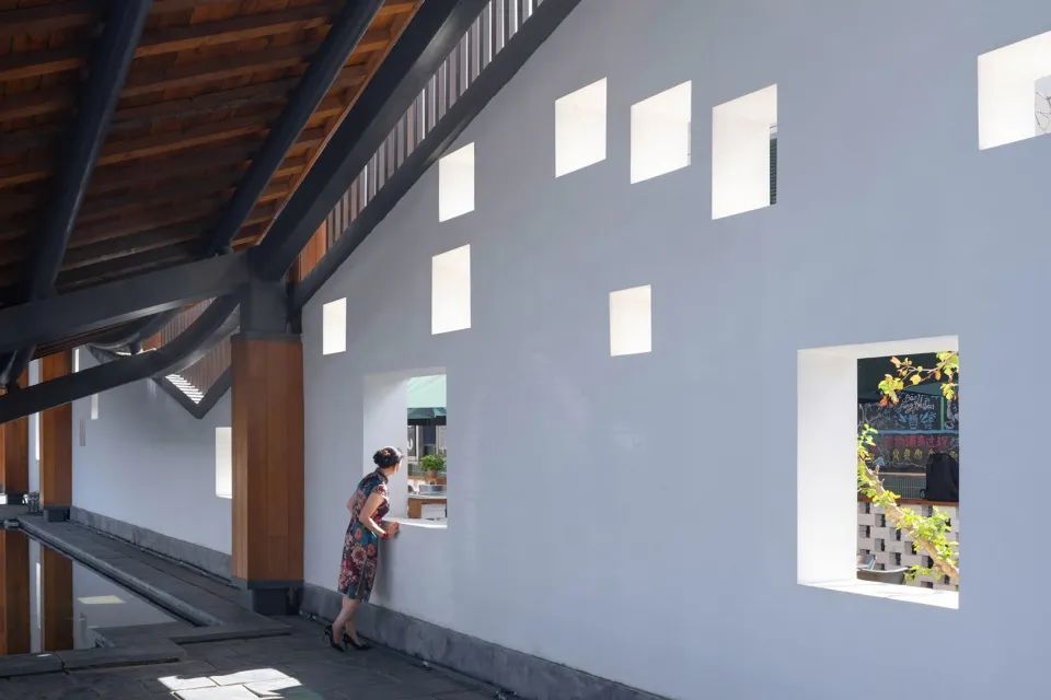 包含了众多空间,旨在大力繁荣发展农村文化,满足农村居民群众精神文化需求。这里面包含三个重要方面:第一,场所精神与乡土环境的再认识;第二,传统空间与现代乡村生活的再定义;第三,乡村地域材料的建构表达与当代呈现。上海创盟国际建筑设计