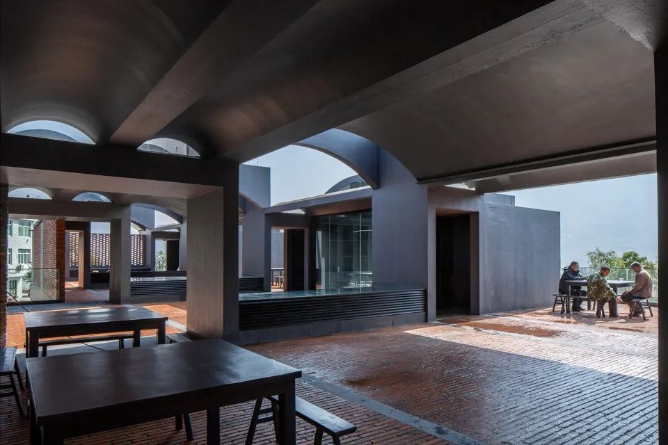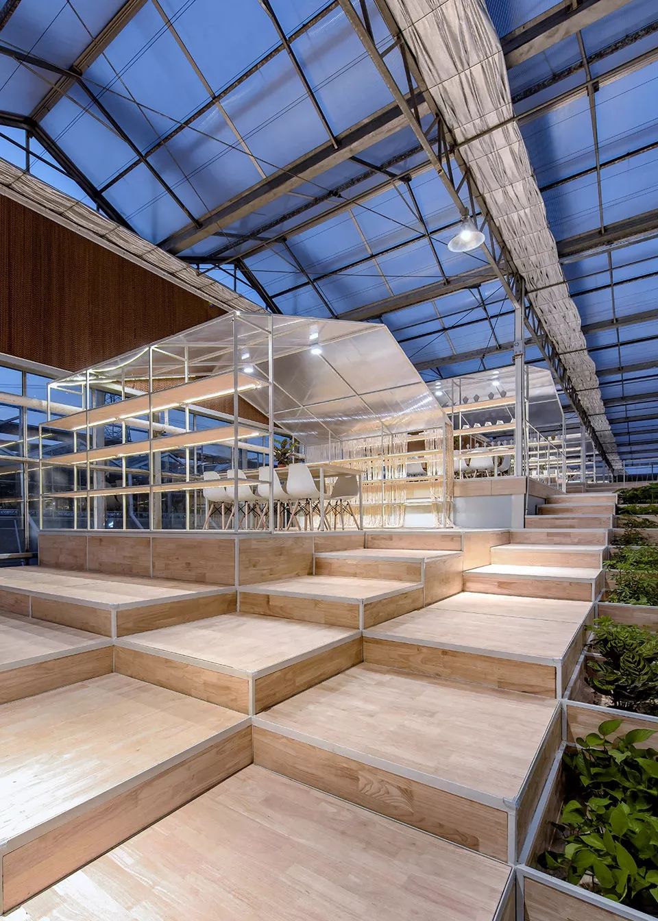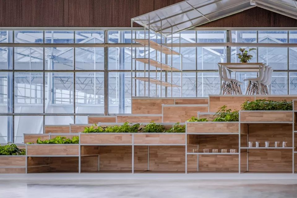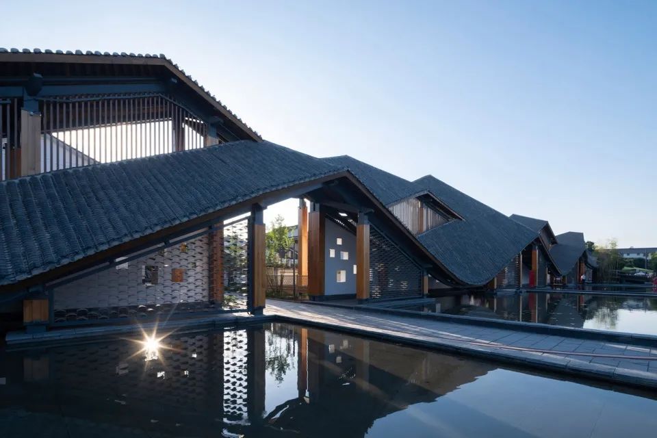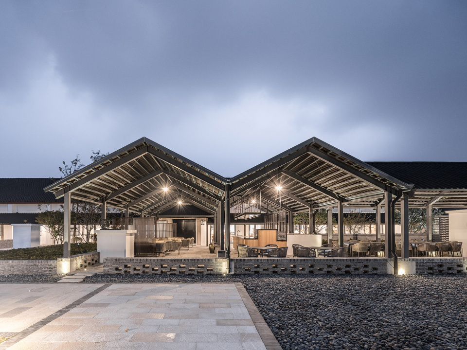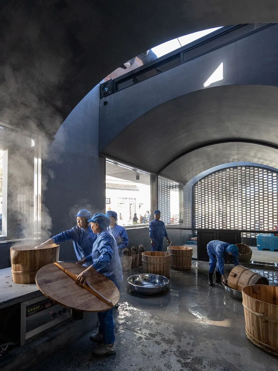 拥有1800多年建县历史的浙江松阳县凭借当地悠久的米酒历史,在村口的一处下沉式场地上建造了一座米酒工坊。地下室是封闭的酒窖,地面一层兼具生产和参观需求,二层则是开放的平台。建筑的形式体量与周边的民宅楼房相呼应,采用混凝土建造,拱顶结构成为空间的竖向标识,在不同标高上形成逐渐退减的空间密度,根据功能需求,墙面围护采用当地常见的镂空红砖墙结合场地特征和功能要求,地下一层作为藏酒的酒窖,和道路衔接的地面一层为生产空间,生,产的序列沿着场地线性延伸,这一系列的工序形成了建筑整体的空间韵律。乡村铺子位于村口,在传统的乡村里,村口是村落和自然的分界点,有标志和分隔,交通组织,有休闲集会功能。通常村口要有棵大树,还有个亭子,村中有个广场,村边有宗祠和家庙,才能说是完整的村子。乡村铺的屋架采取了传统中国的木构做法,设计参考了皖南和婺源乡村的一些公共建筑形式,如路亭、廊桥等。所以这里可以算是一个回溯到传统江南文化里的公共空间。这是一处占地2000方的农业玻璃大棚,多年失修,急待改造。嘉兴的喜悦公社注定不是一场实验建筑的即兴表演,而是针对中国农村脚踏实地的现代空间升级范例。所以本案设计的“第一变”,在于将简陋的农作物大棚“变身”为现代农业的加工和体验场所,是为“食集”。建筑顶部天窗设有活动遮阳系统,白天可为活动场地遮阳隔热,冬季增加日照,起到保温作用。在嘉兴喜悦公社的“艺集”设计中,打开未来的钥匙并非造景。垣建筑