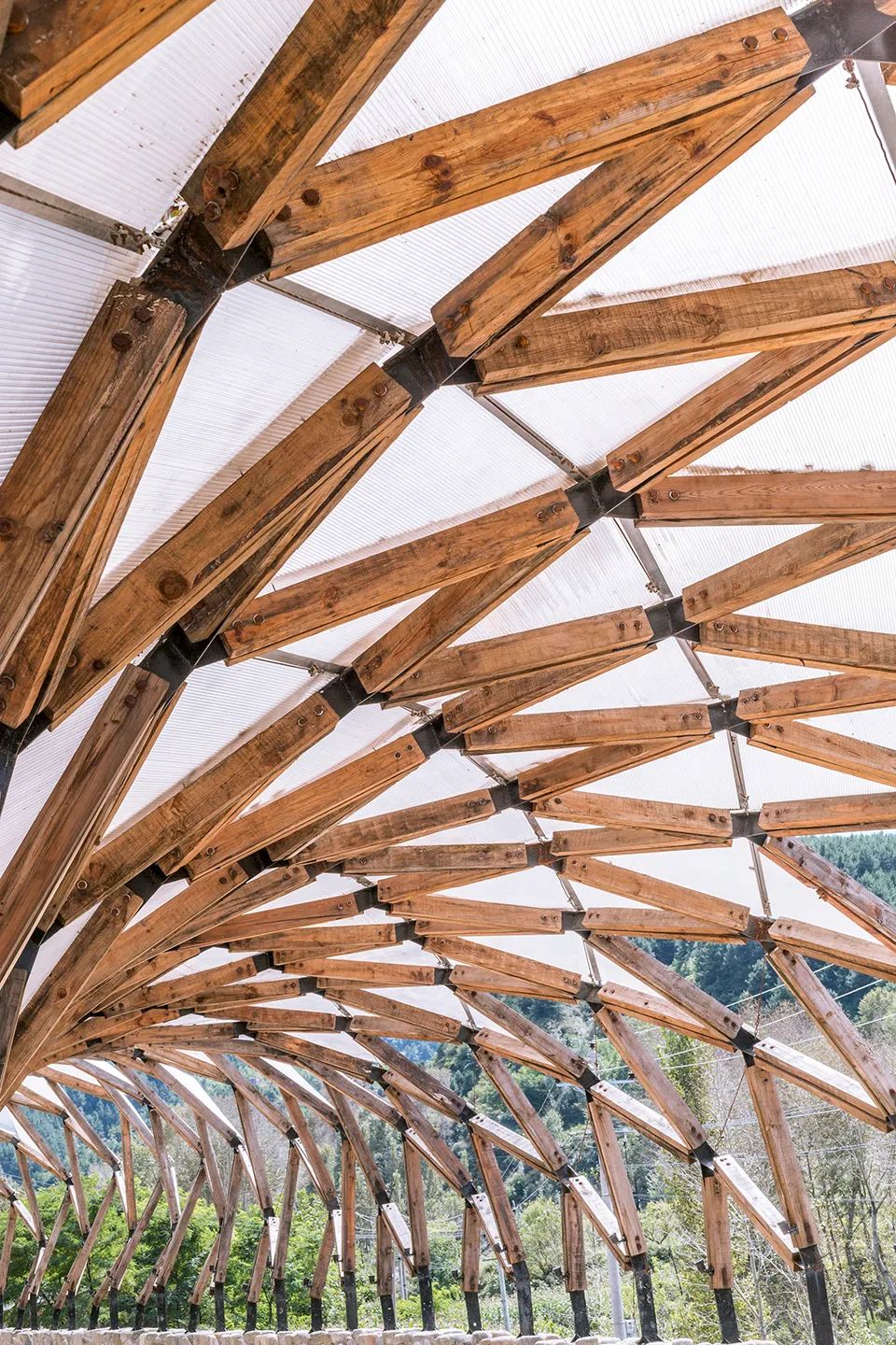 道明竹艺村位于中国非物质文化遗产竹编所在地崇州道明镇,道明镇是历史悠久的竹编之乡,道明竹编是国家非物质文化遗产,传统的竹编手艺在这里代代传承。但同国内大多数“非遗”一样,面临着重找出路的问题。其中的转机与改变,源自于一座叫做“竹里”的建筑空间。远远望去“竹里”像一个卧倒的数字8,被竹林包裹着,圆形小青瓦房与周围竹林、树木,与远山、田野相得益彰。其建筑内部更是曲径通幽,水景与山景之于两个中庭天井,营造出传统元素与设计美学的诗情画意。牛背山志愿者之家缘起于成都的资深义工大雁和他的一群90后小伙伴们在牛背山的一次旅行。
