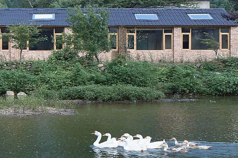 地块位于安吉山川乡船村主干道边,紧邻溪水,建筑原始状态很差,屋面瓦、墙体基本报废,只有几根红砖柱和木屋架尚能加固使用。设计师在大空间中尽量多的设置天窗,使风景最大化的映入室内,也尽可能减少对周边民宅的干扰。施工中大量使用就地取材的乡土材料,门窗由村里的老工匠制作。木兰围场的建造场所是一片大草原,怎样的建筑才能不违和的融入场所呢?设计师试图从蒙古包中寻求灵感,其不仅是一种独特的建筑形式,而且是草原的图腾。设计以传统的蒙古包为母题,从平面,立面到装饰纹样,向传统精神致敬。营盘村在秦岭深处,这个海拔1500米的小山村,炊烟袅袅,恍若世外桃源。陕西留坝县,人口不足五万,却连续出了几个现役青少年国脚。营盘村就是这些少年的驰骋之地,因此开始营建足球和滑雪学校。STUDIO QI需要完成的第一个任务,就是为小镇设计一个可以同时容纳四五百人就餐的「学生食堂」。成都塞纳园境