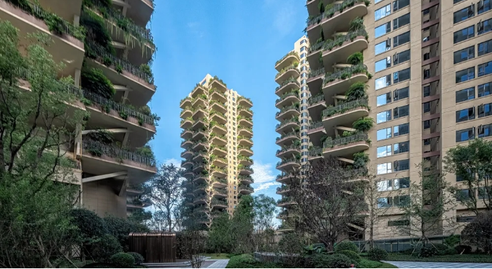 国内首个“第四代绿色生态住房”是成都七一城市森林花园,感兴趣的朋友可以具体查查。