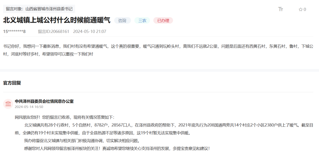 书记你好,我想问一下最新消息,我们村有没有希望通暖气,这个真的很重要,暖气只通到坛岭头村,离我们不远就2公里,问题是后面还有西黄石村,东黄石村,鲁村,下城公村,河底村等好多村,希望领导可以重视一下我们村。