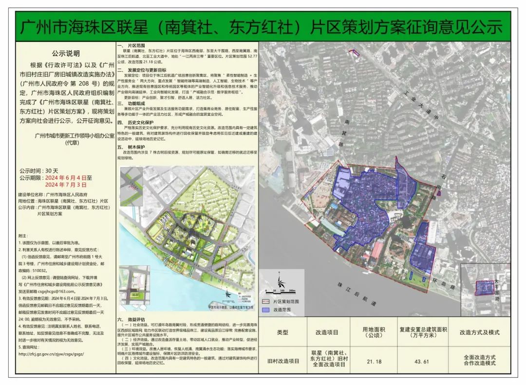 日前,《海珠区联星(南箕社、东方红社)片区策划方案》原则通过了广州市城市更新领导小组2024年第一次会议,并于6月4日正式挂网公示!